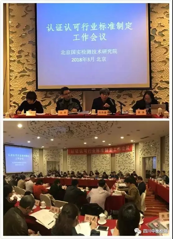 《检验检测机构资质认定能力评价环境监测机构要求》等六项认证认可行业标准制定工作会议,于3月31日,由北京国实检测技术研究院组织在北京召开,国家认监委科标部刘先德主任、国家认监委实验室部沈军副主任亲临现场指导并发表讲话,四川中衡检测技术有限公司总经理邱鑫海先生代表公司参加了此次会议。