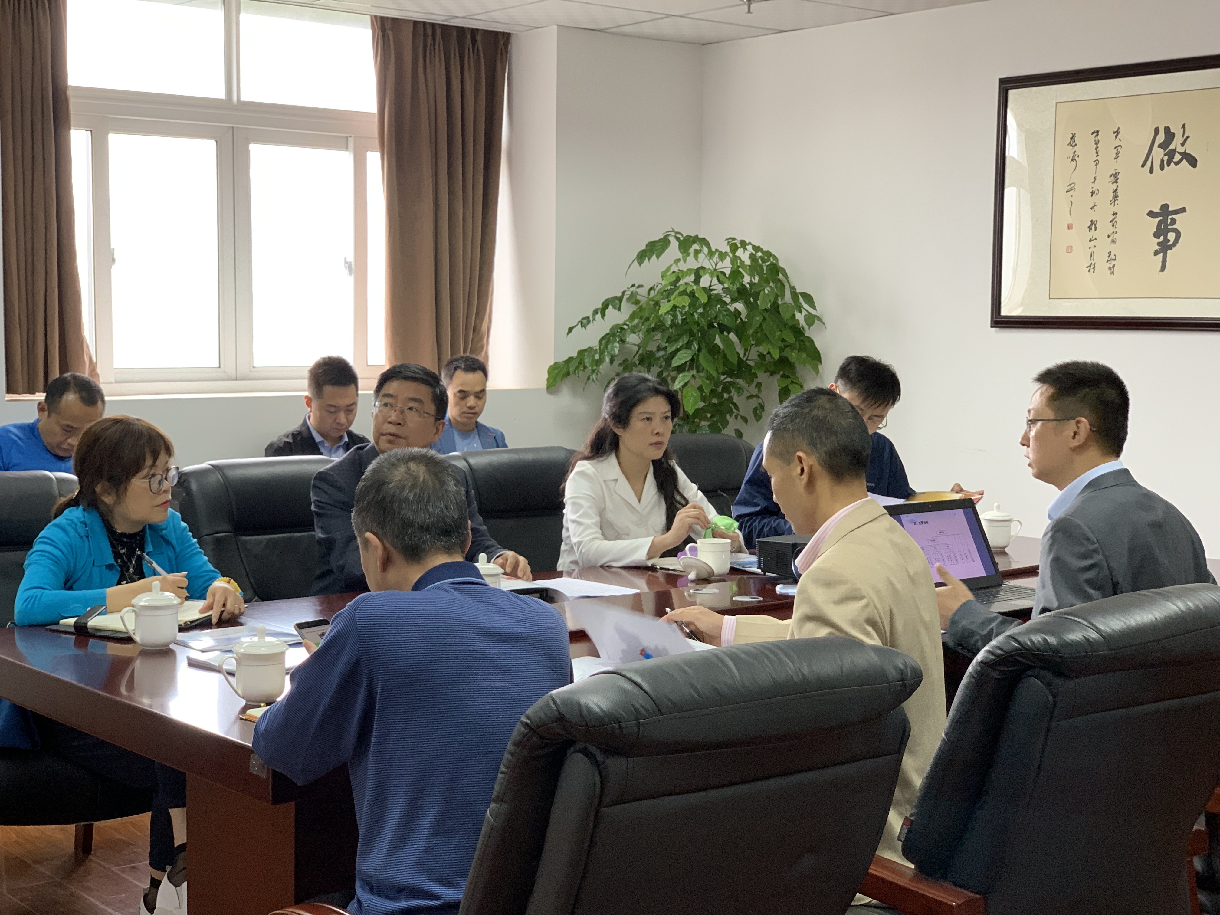考察结束后,双方在会议室召开了座谈交流会,殷万国董事长对公司基本情况及现状做了详细介绍,并对公司目前在环境监测行业的市场占有率以及取得的成绩做了汇报,得到了周新书记的高度肯定。会上,殷万国董事长还就公司目前存在的问题与周书记进行了交流,如高端技术人才的引进问题、产业投资问题。