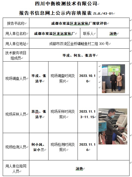 成都市双流区龙远家私厂现状评价