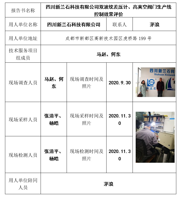 四川新兰石科技有限公司双波纹差压计、高真空阀门生产线 控制效果评价
