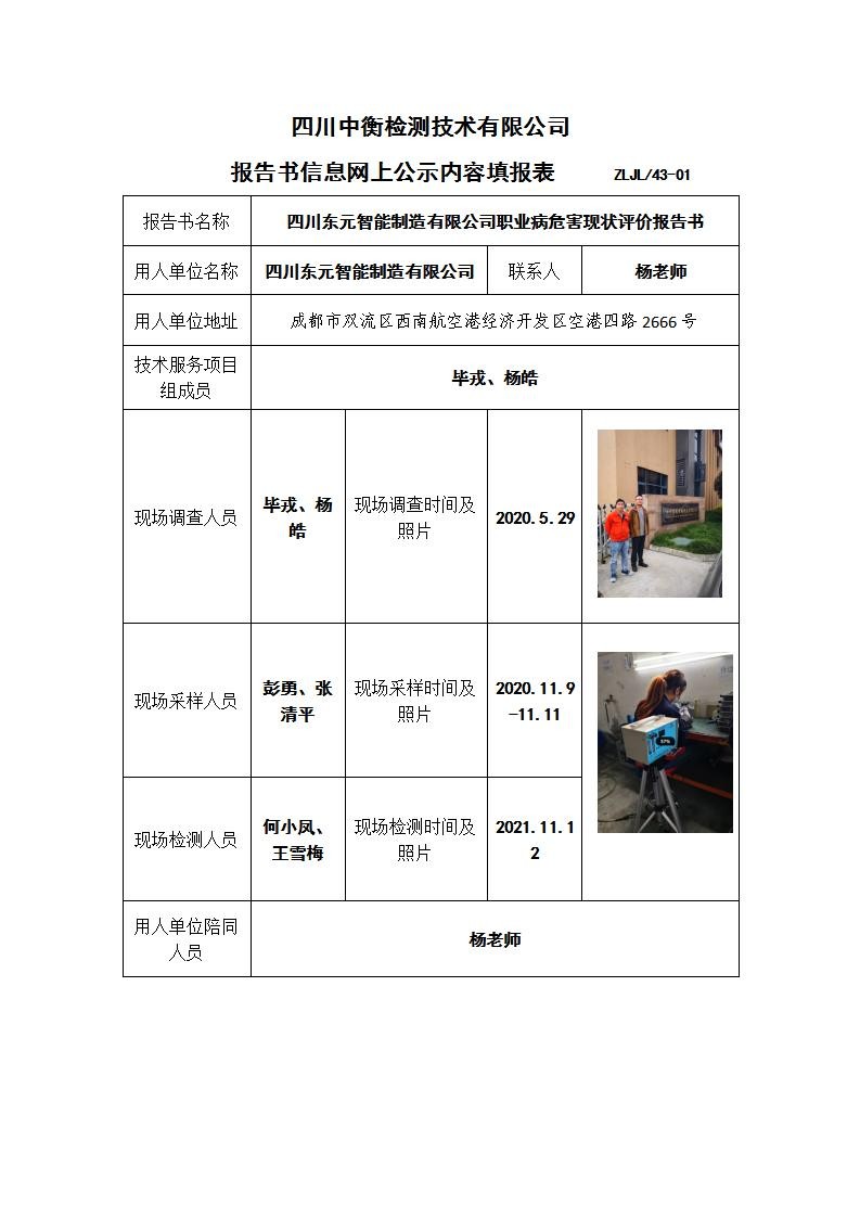 四川东元智能制造有限公司职业病危害现状评价报告书