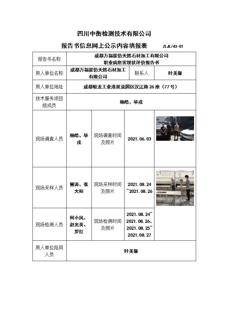成都万福能仿天然石材加工有限公司 职业病危害现状评价
