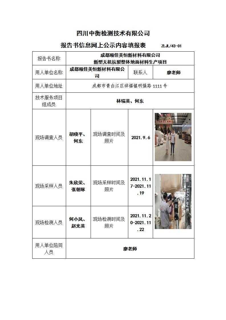 成都顺佳美恒新材料有限公司 新型无机抗裂整体地面材料生产项目