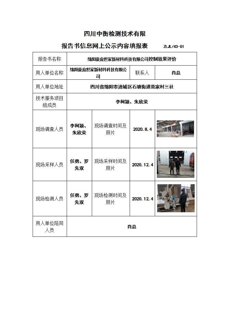 绵阳豪庭世家新材料科技有限公司控制效果评价