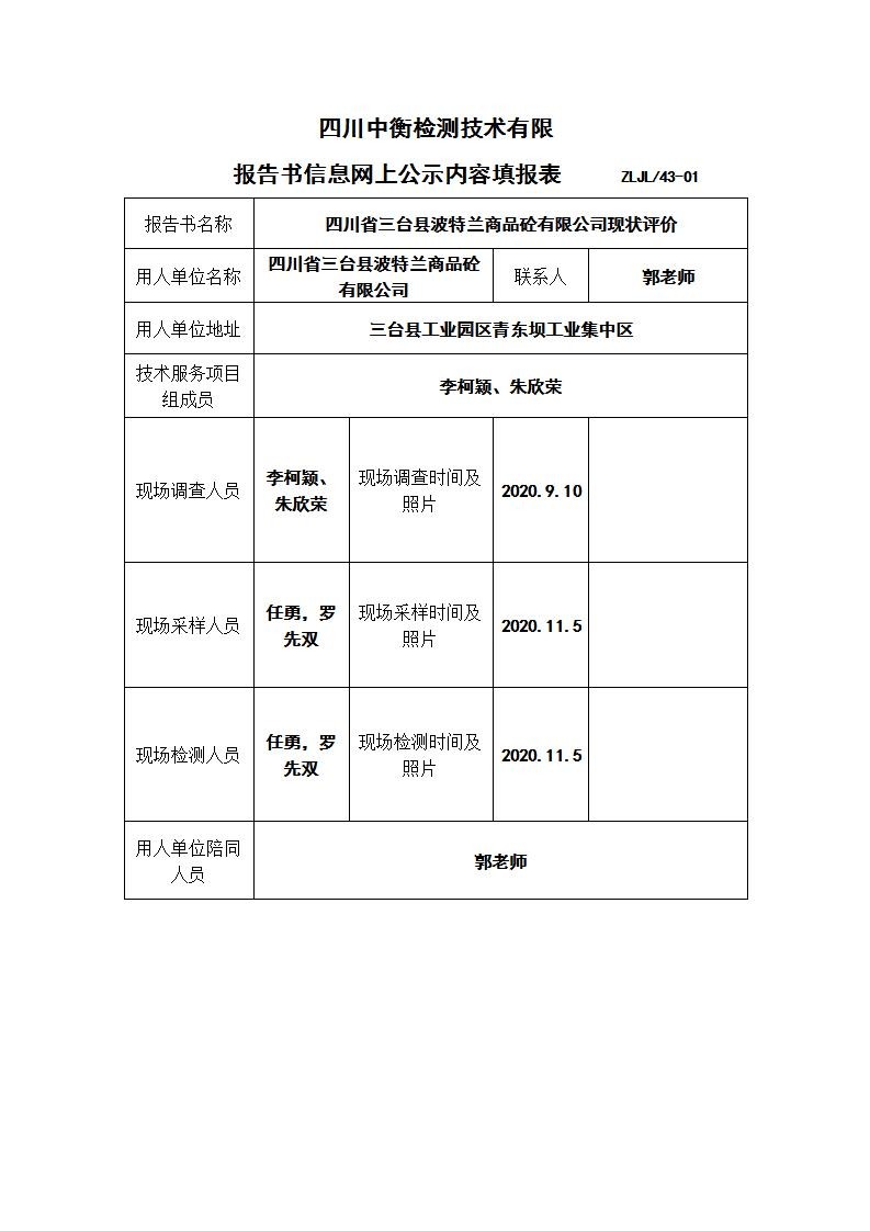 四川省三台县波特兰商品砼有限公司现状评价