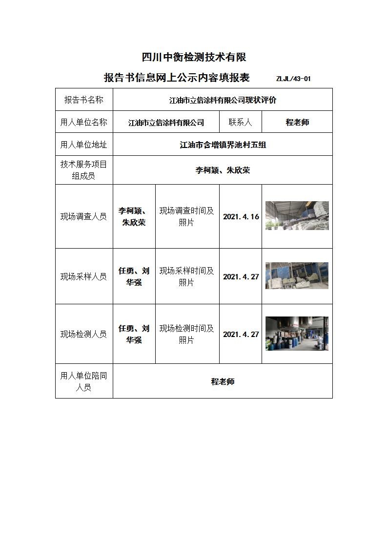 江油市立信涂料有限公司现状评价