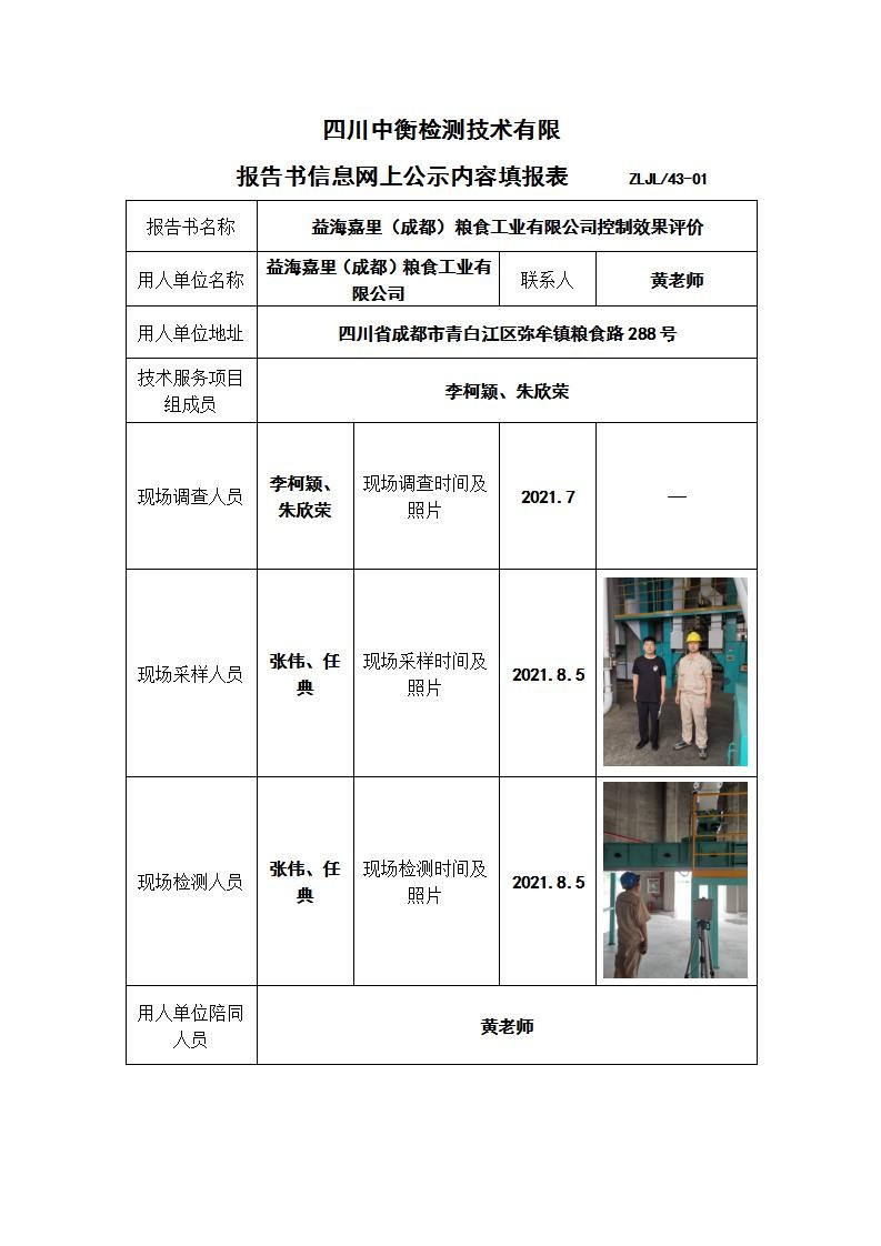 益海嘉里(成都)粮食工业有限公司控制效果评价