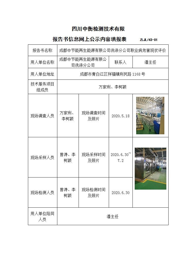成都中节能再生能源有限公司洗涤分公司职业病危害现状评价