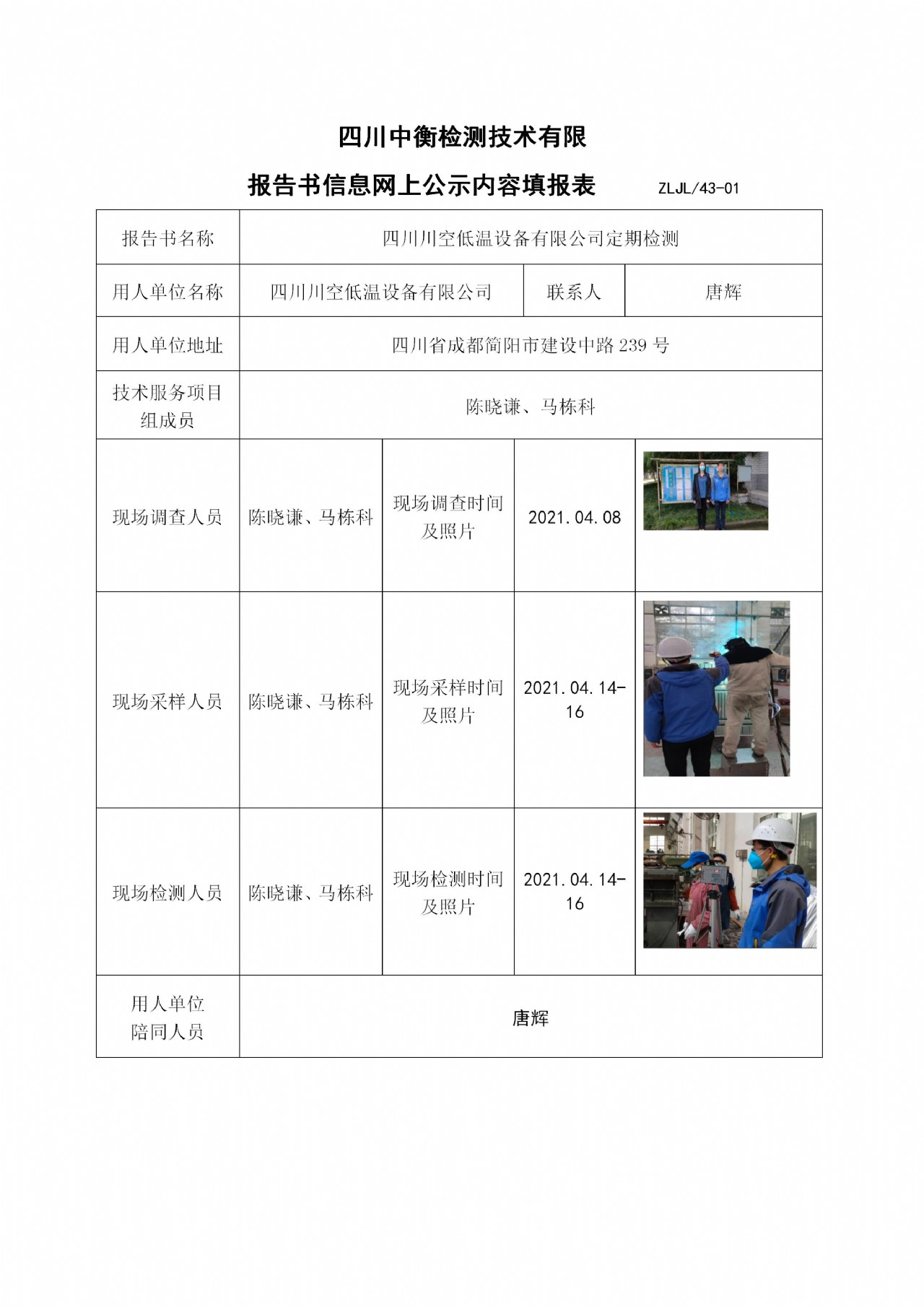 四川川空低温设备有限公司定期检测
