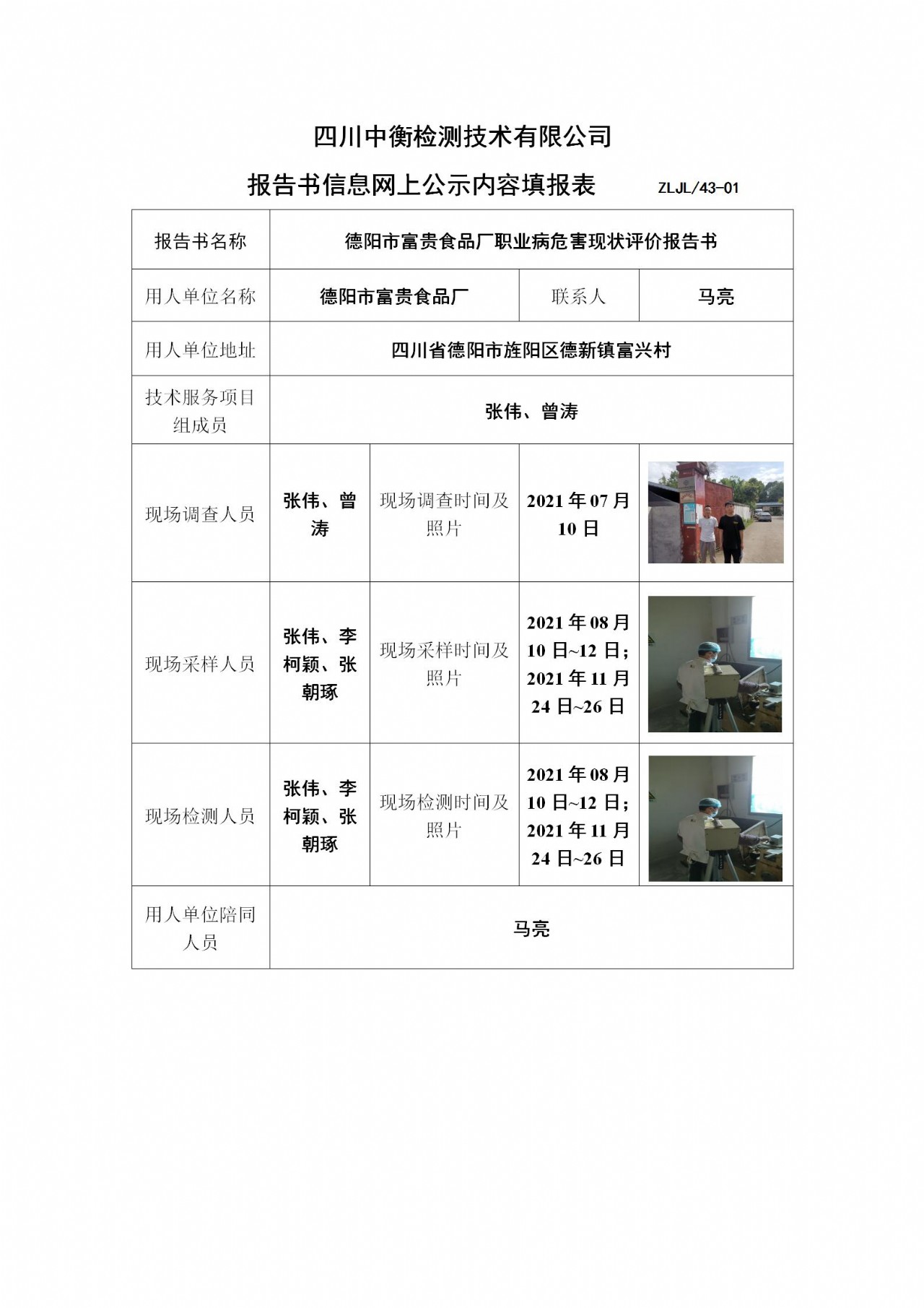 德阳市富贵食品厂职业病危害现状评价报告