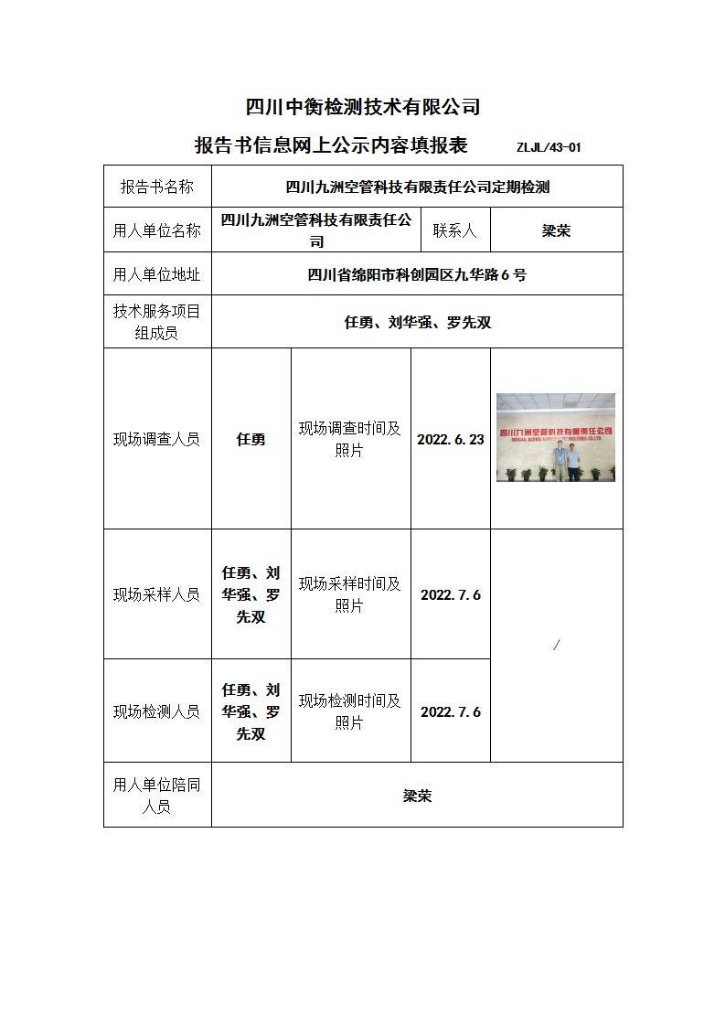 四川九洲空管科技有限责任公司职业病危害定期检测