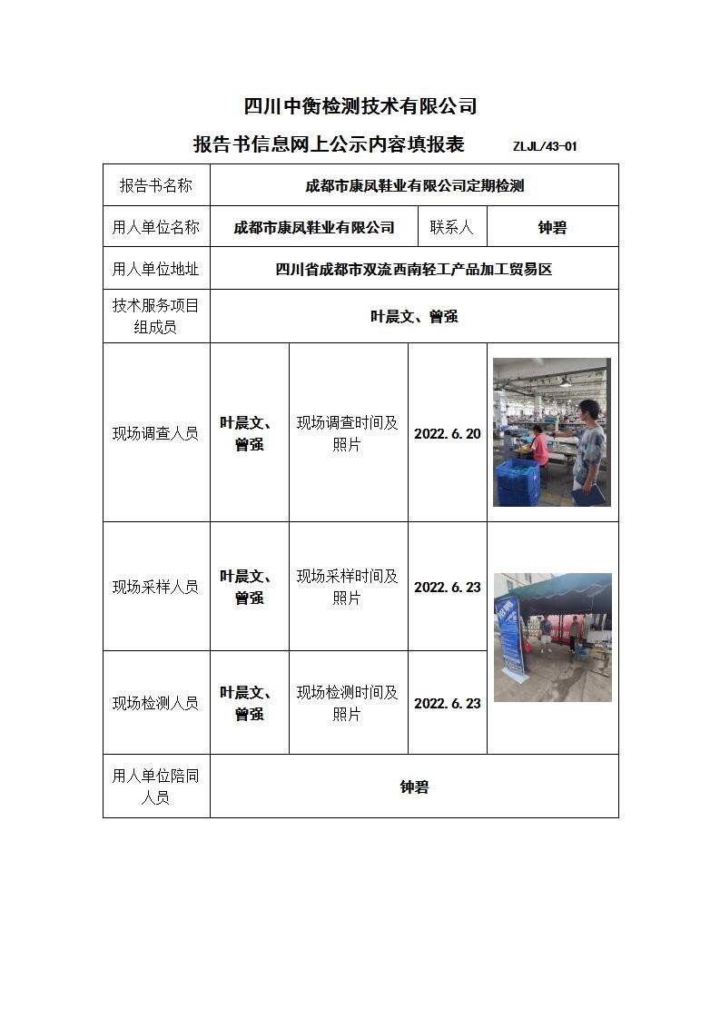 成都市康凤鞋业有限公司职业病危害定期检测