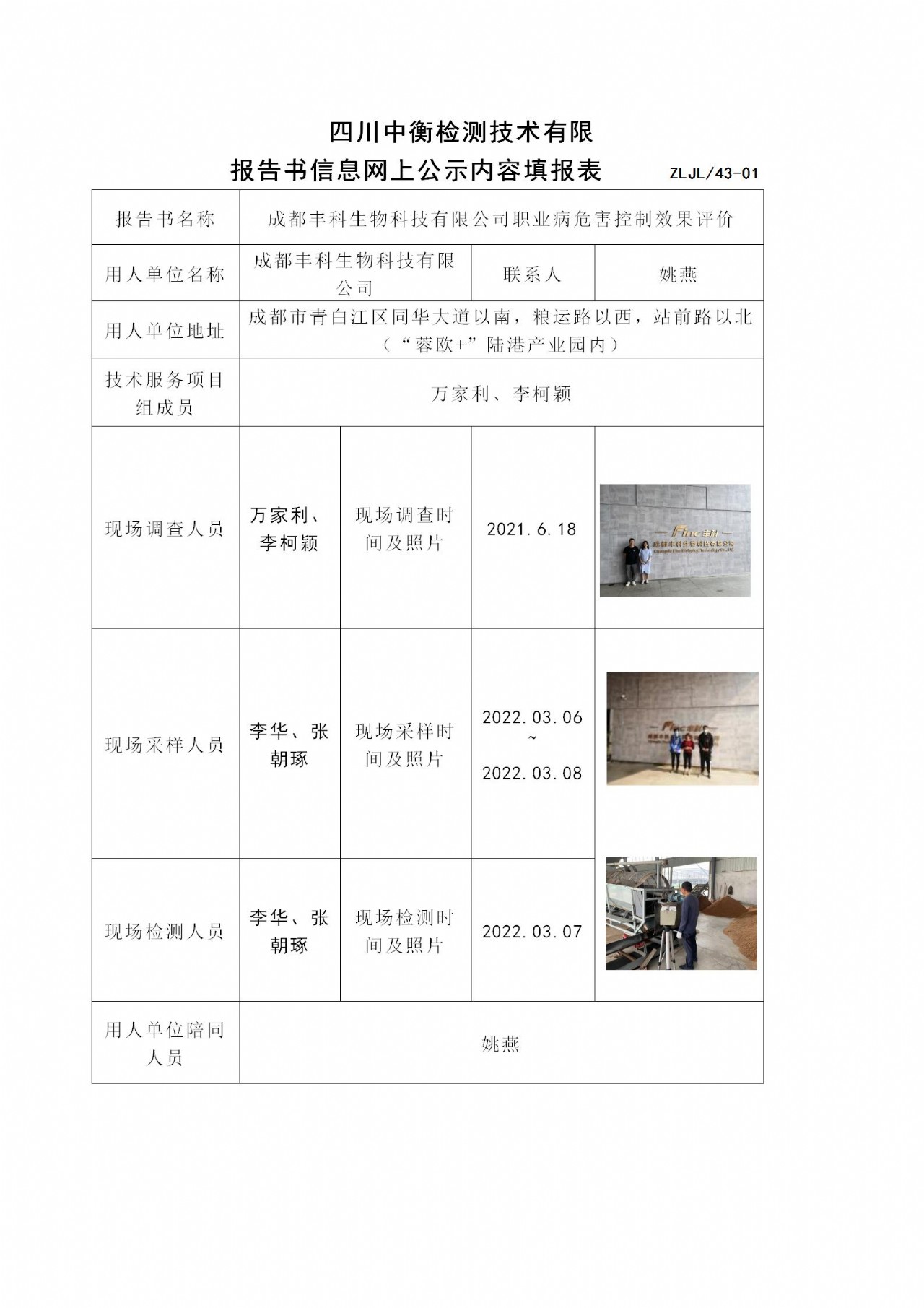 成都丰科生物科技有限公司职业病危害控制效果评价