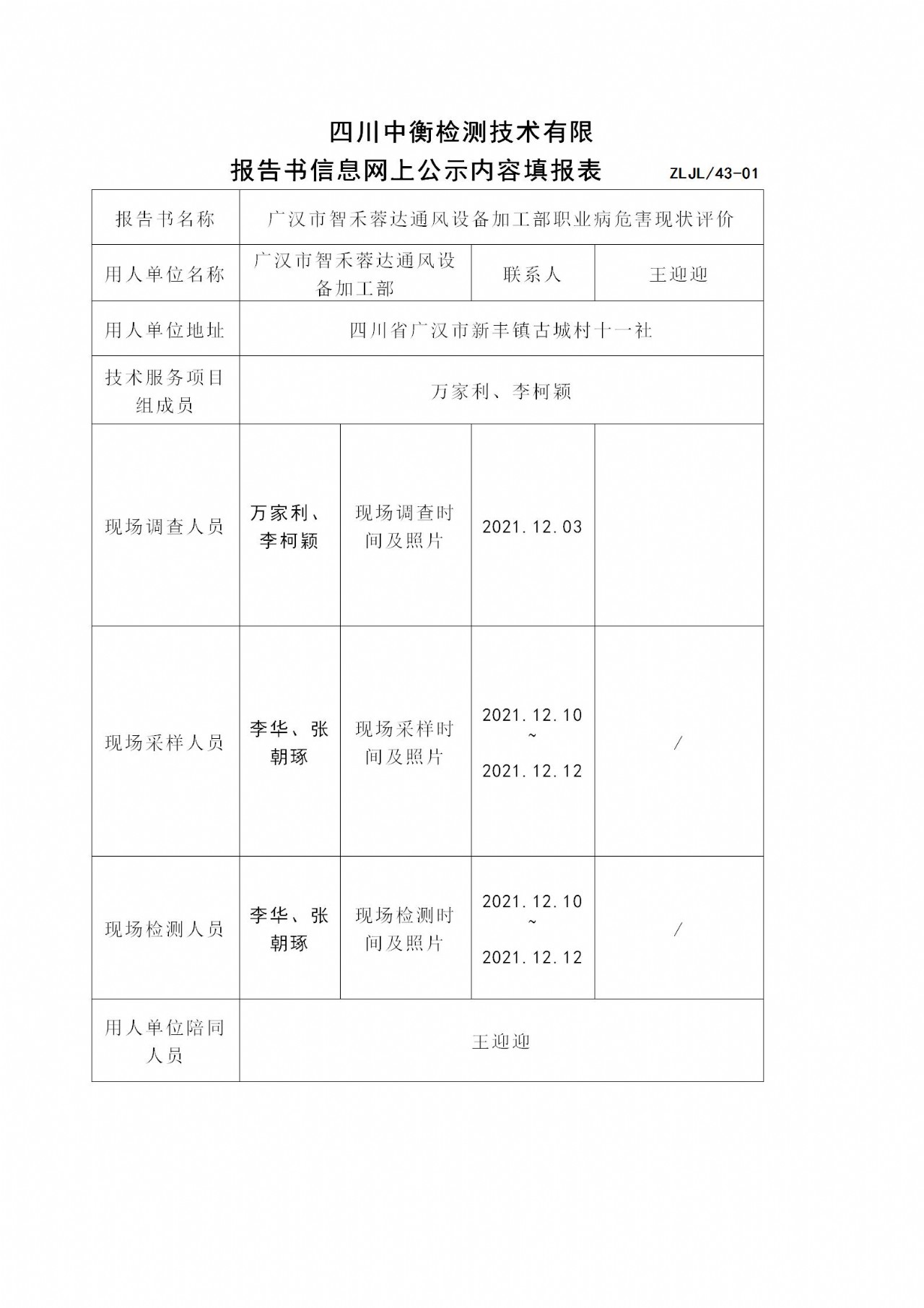广汉市智禾蓉达通风设备加工部职业病危害现状评价