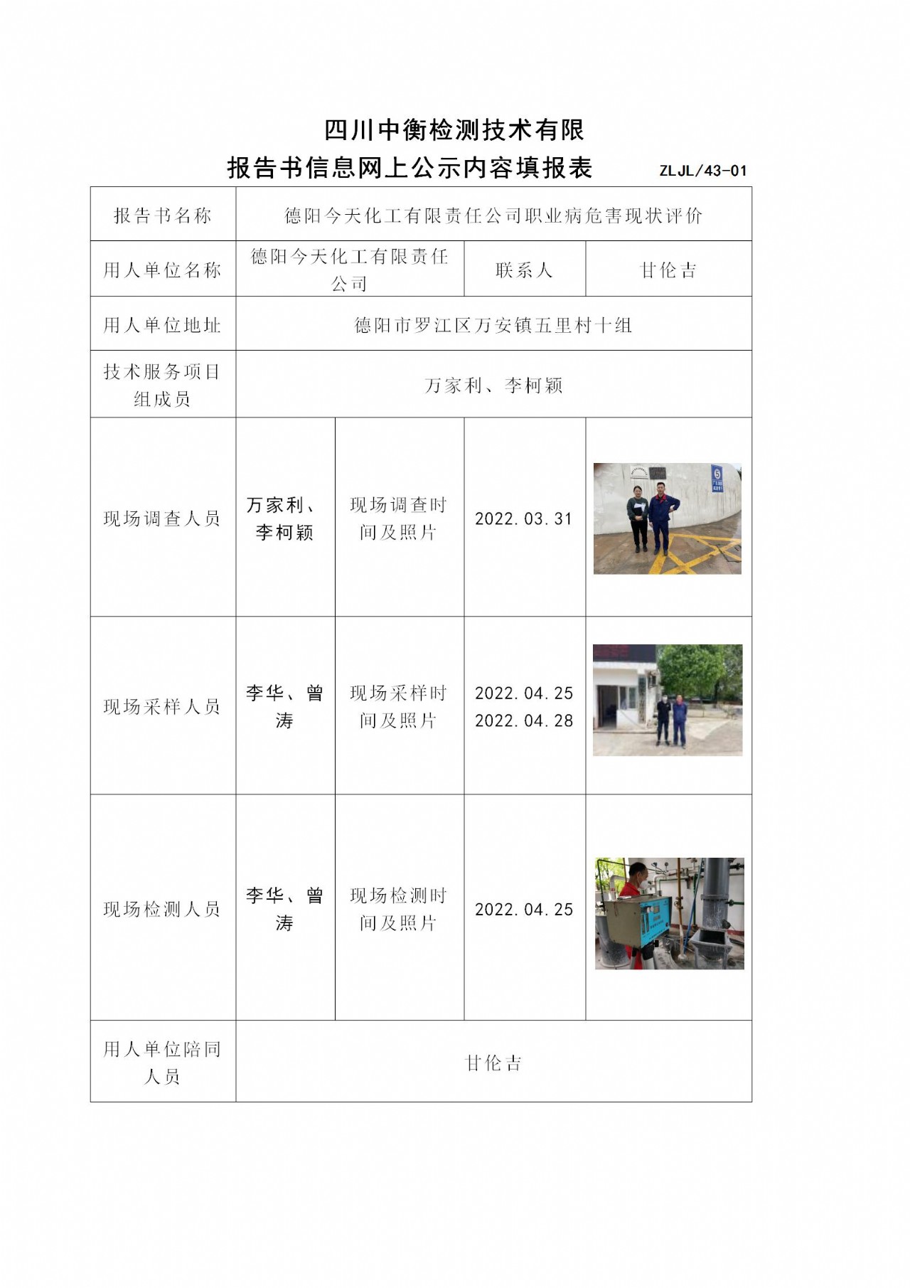 德阳今天化工有限责任公司职业病危害现状评价