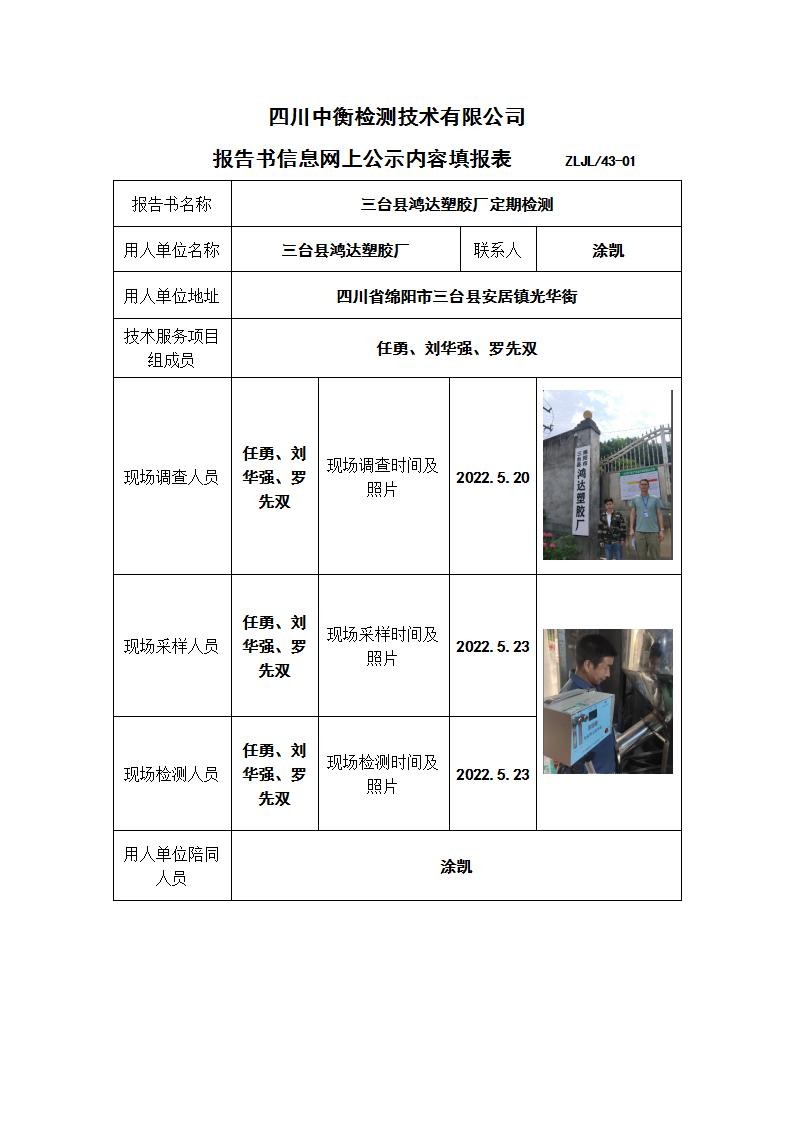 三台县鸿达塑胶厂职业病危害定期检测