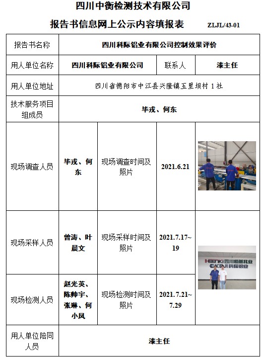 四川科际铝业有限公司控制效果评价