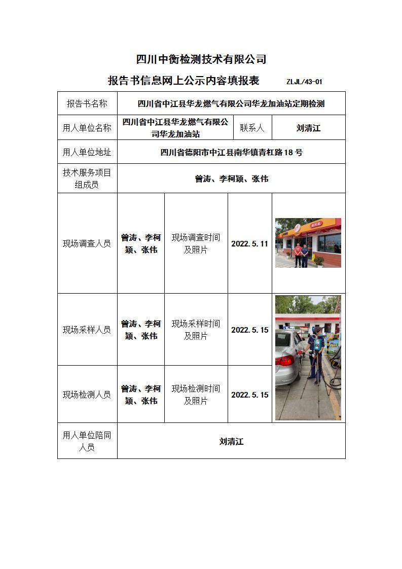 四川省中江县华龙燃气有限公司华龙加油站职业病危害定期检测