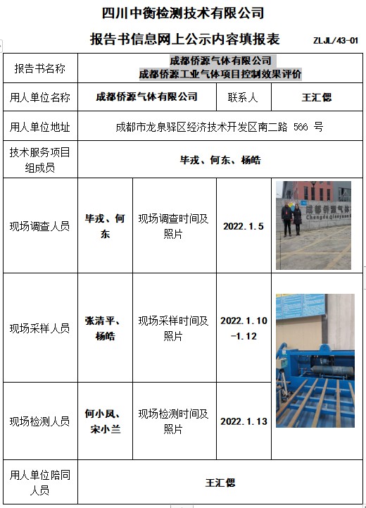 成都侨源气体有限公司 成都侨源工业气体项目控制效果评价