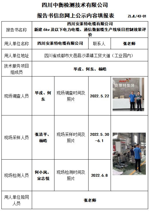 四川安莱特电缆有限公司 新建6kv及以下电力电缆、通信数据缆生产线项目控制效果评价