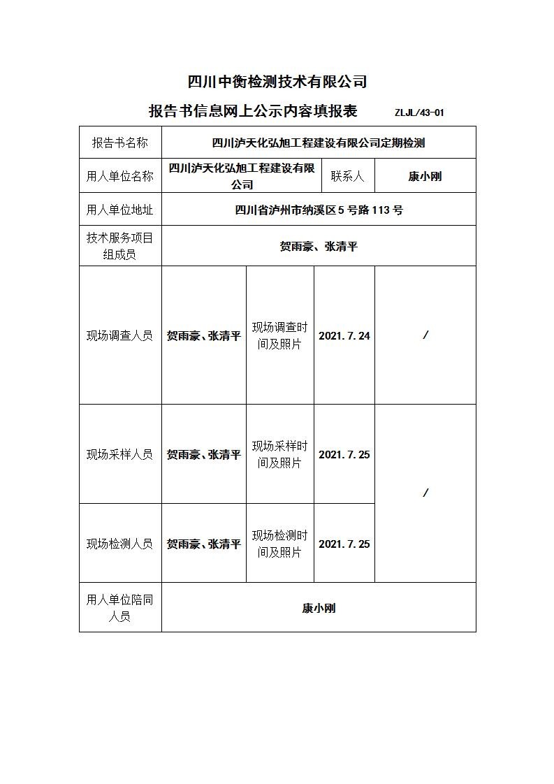 四川泸天化弘旭工程建设有限公司职业病危害定期检测