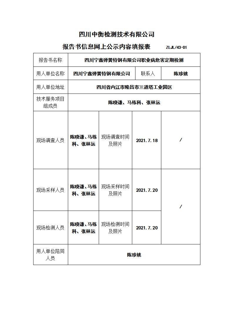 四川宁鑫弹簧特钢有限公司职业病危害定期检测