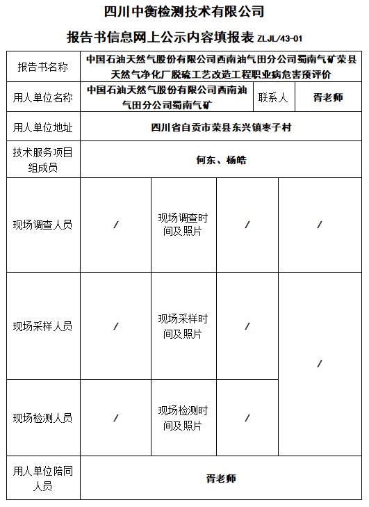 中国石油天然气股份有限公司西南油气田分公司蜀南气矿荣县天然气净化厂脱硫工艺改造工程职业病危害预评价