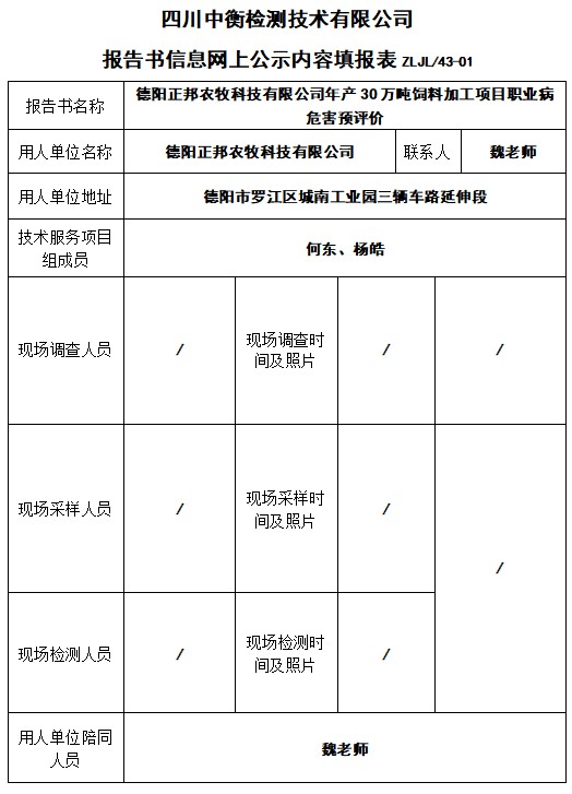 德阳正邦农牧科技有限公司年产30万吨饲料加工项目职业病危害预评价