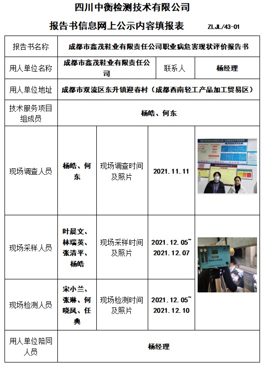 成都市鑫茂鞋业有限责任公司职业病危害现状评价
