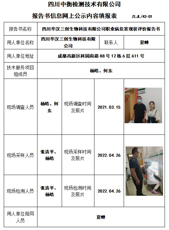四川华汉三创生物科技有限公司职业病危害现状评价