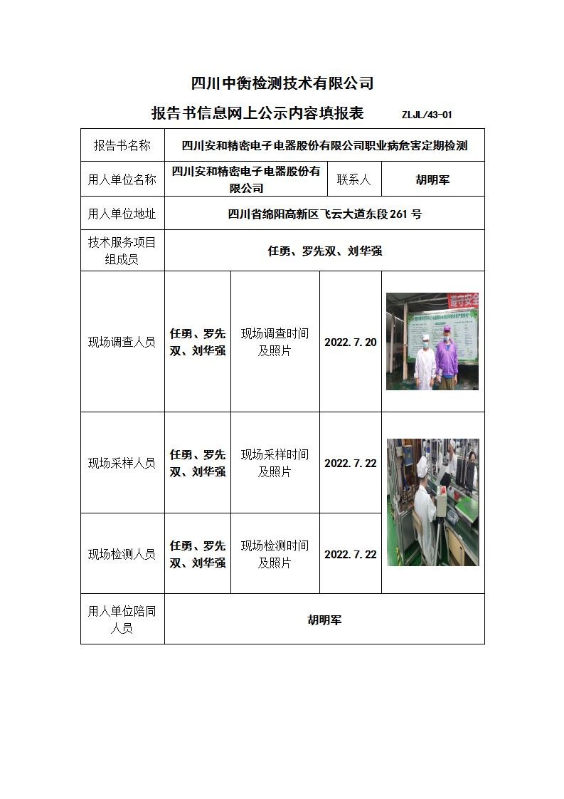 四川安和精密电子电器股份有限公司职业病危害定期检测