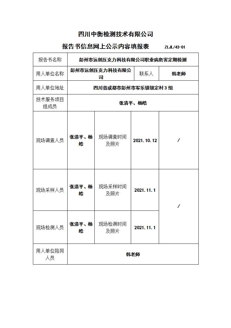 彭州市远创压克力科技有限公司定期检测