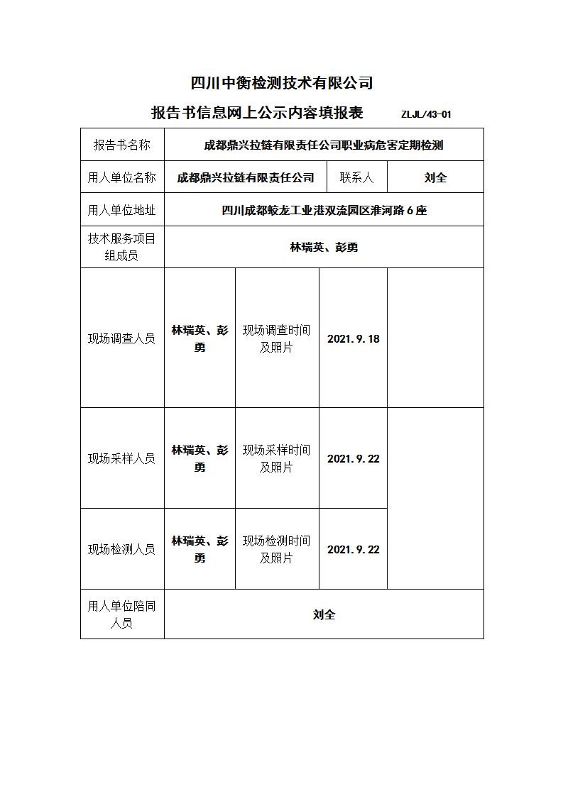 成都鼎兴拉链有限责任公司职业病危害定期检测