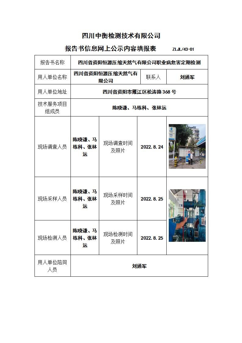 四川省资阳恒源压缩天然气有限公司职业病危害定期检测