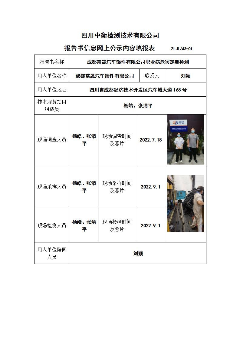 成都富晟汽车饰件有限公司职业病危害定期检测