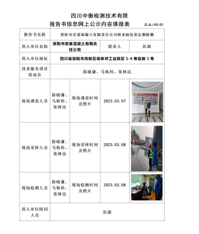 资阳市宏基混凝土有限责任公司职业病危害定期检测