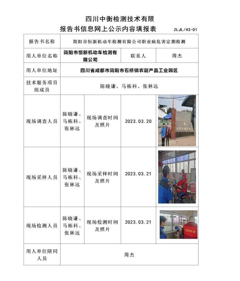简阳市恒新机动车检测有限公司职业病危害定期检测