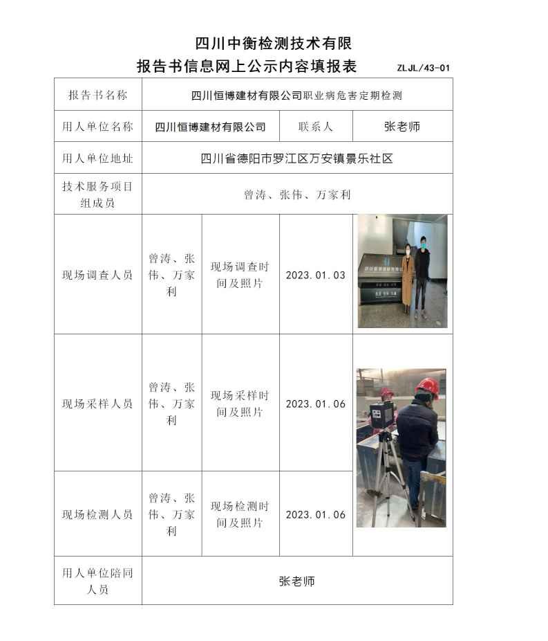 四川恒博建材有限公司职业病危害定期检测