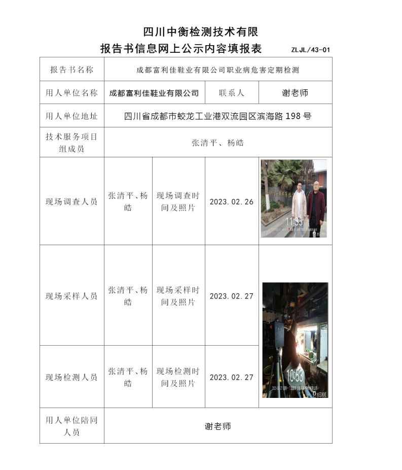 成都富利佳鞋业有限公司职业病危害定期检测