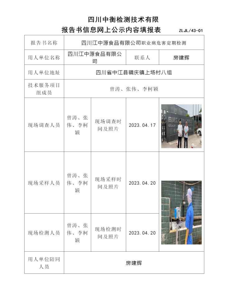四川江中源食品有限公司职业病危害定期检测
