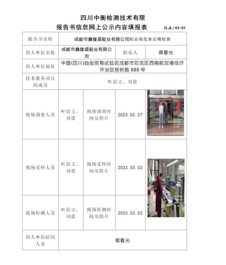 成都市鑫隆盛鞋业有限公司职业病危害定期检测