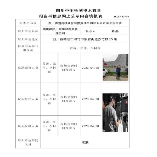 四川德阳川雄建材有限责任公司职业病危害定期检测