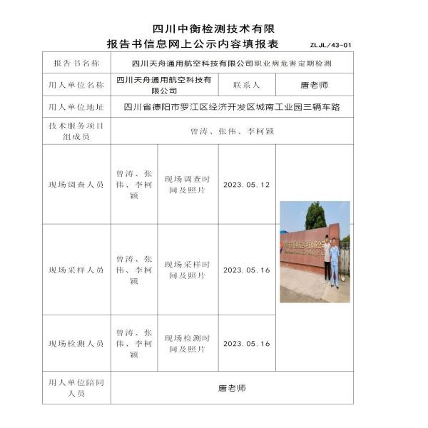 四川天舟通用航空科技有限公司定期检测