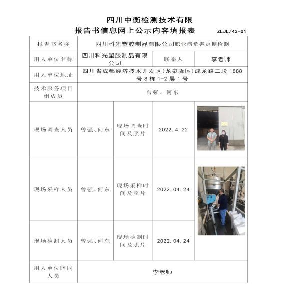 四川科光塑胶制品有限公司控制效果评价