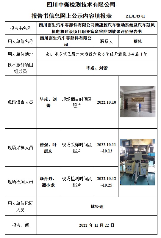 四川富生汽车零部件有限公司控制效果评价