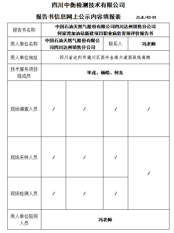 中国石油天然气股份有限公司四川达州销售分公司 何家湾加油站新建项目预评价