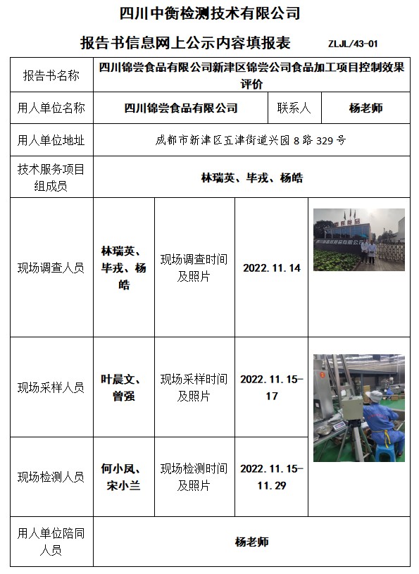 四川锦尝食品有限公司新津区锦尝公司食品加工项目控制效果评价