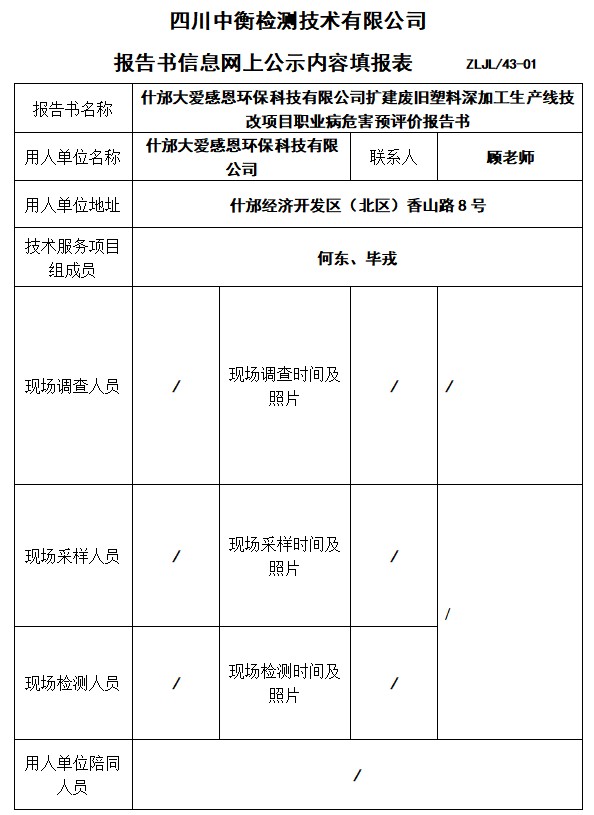 什邡大爱感恩环保科技有限公司扩建废旧塑料深加工生产线技改项目预评价