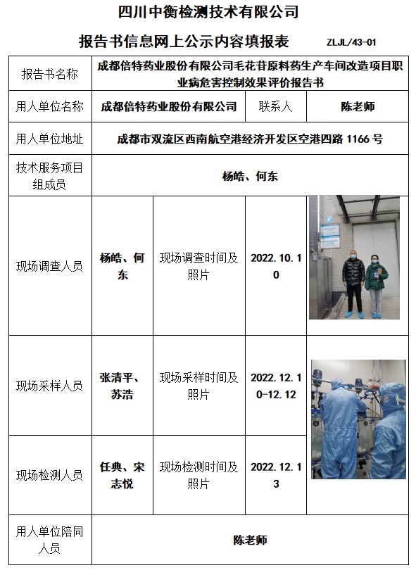 成都倍特药业股份有限公司毛花苷原料药生产车间改造项目控制效果评价