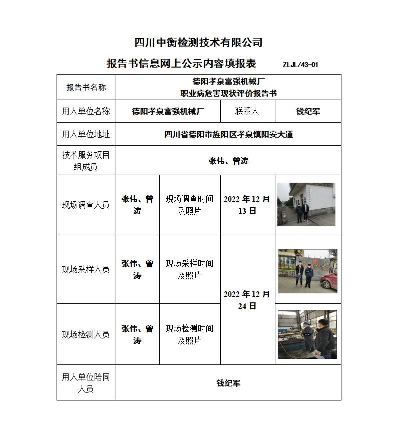 德阳孝泉富强机械厂 职业病危害现状评价报告书